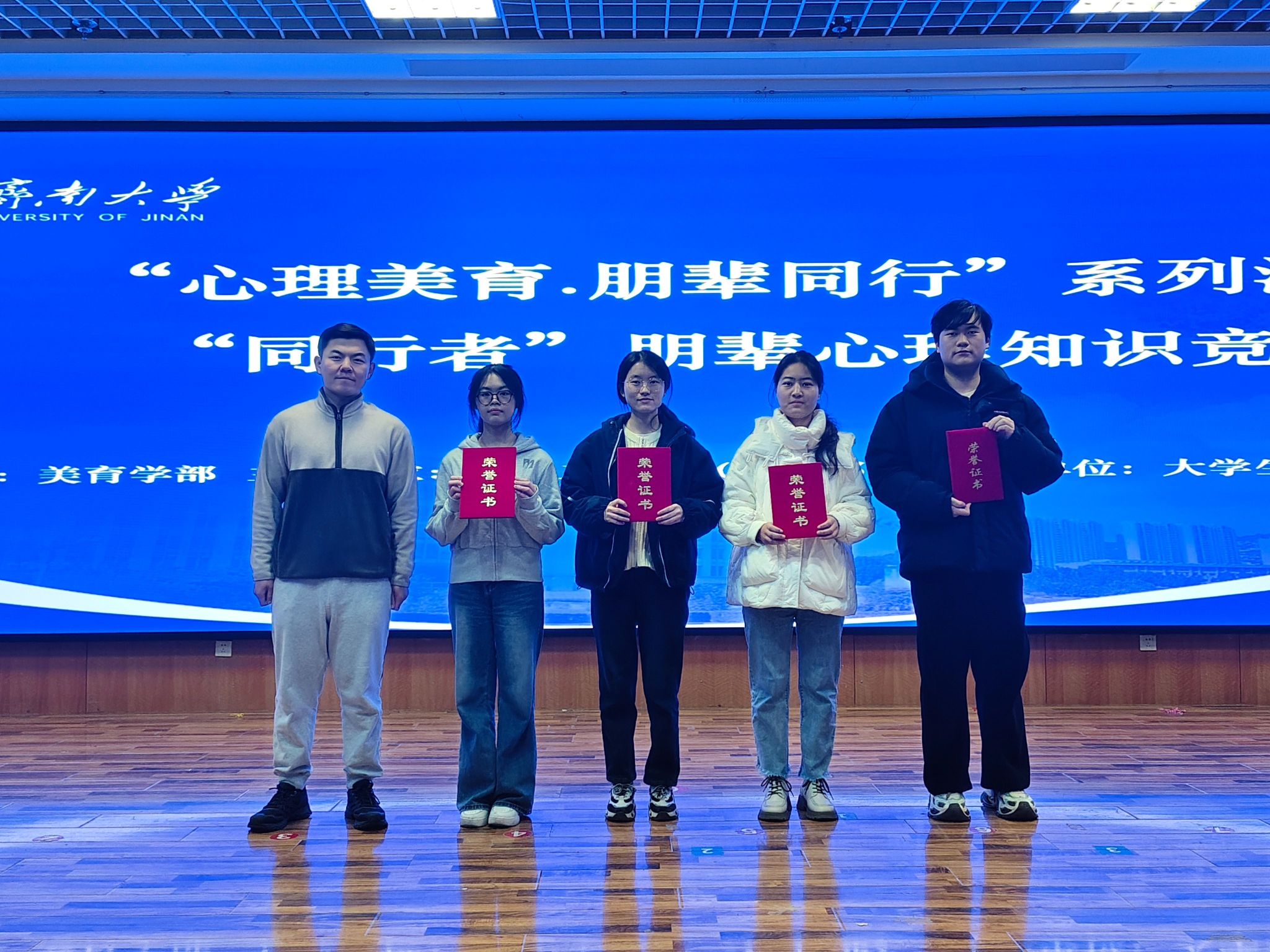 为深入推进朋辈心理支持体系的构建,运用专业知识赋能校园心理健康服务,12月15日,学院组织学生团队参加济南大学“同行者”朋辈心理支持知识竞赛校级总决赛。经过多轮激烈角逐,我院参赛队伍凭借出色表现,最终斩获一等奖1项、三等奖1项。