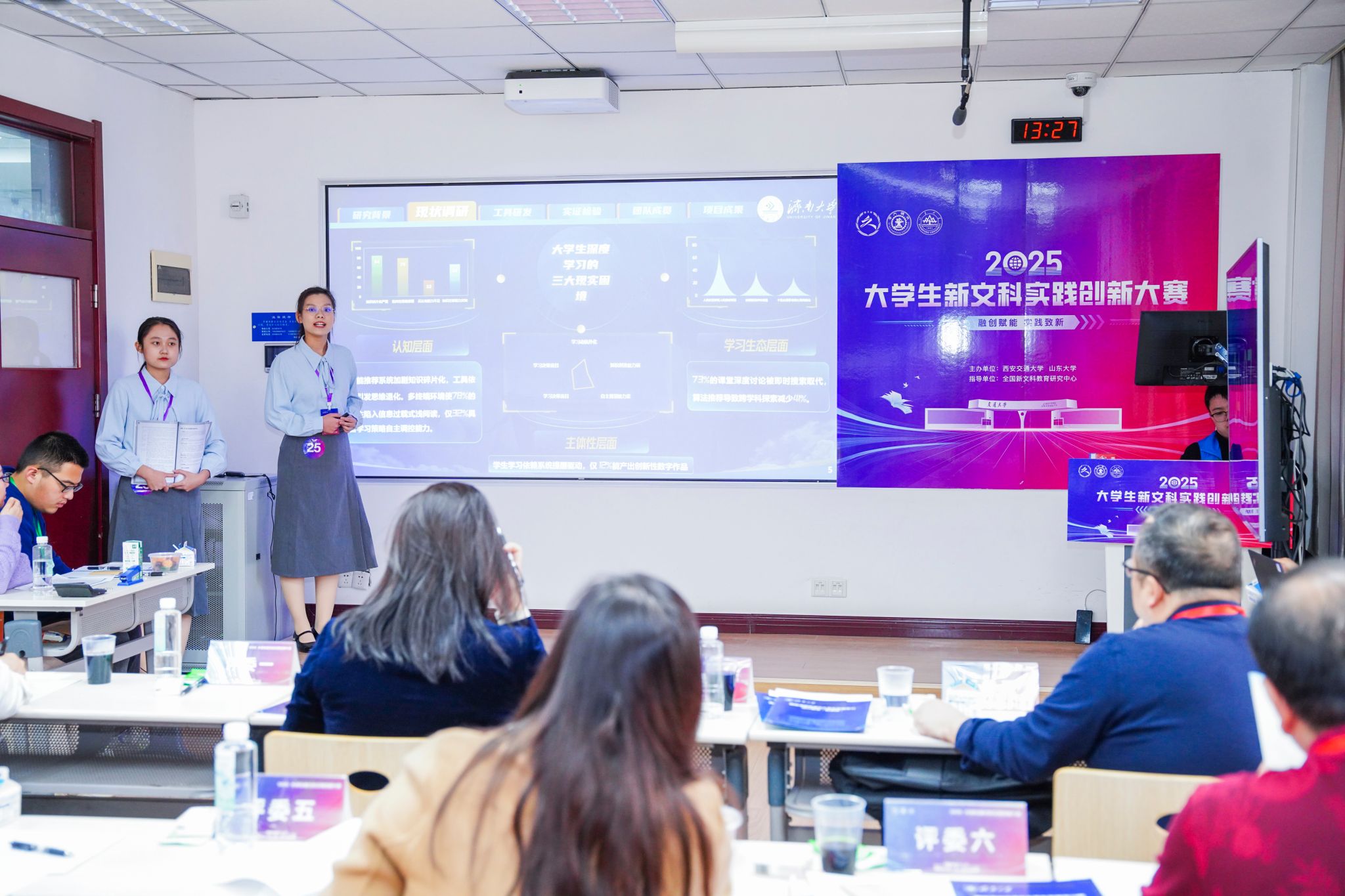 11月28日至30日,由全国新文科教育研究中心主办,西安交通大学、山东大学承办的2025年大学生新文科实践创新大赛决赛在陕西西安举行。经过校赛、国赛初评和线下决赛的激烈角逐,由教育与心理科学学院刘晓彤老师指导,刘天妤、亓子扬、王睿哲、王文馨、张馨予等同学共同完成的《智慧课堂环境中大学生深度学习现状调研与路x径设计》项目斩获全国银奖,实现了学院在新文科实践创新领域国家级赛事的重要突破。